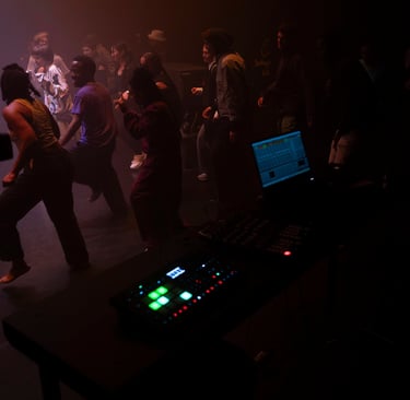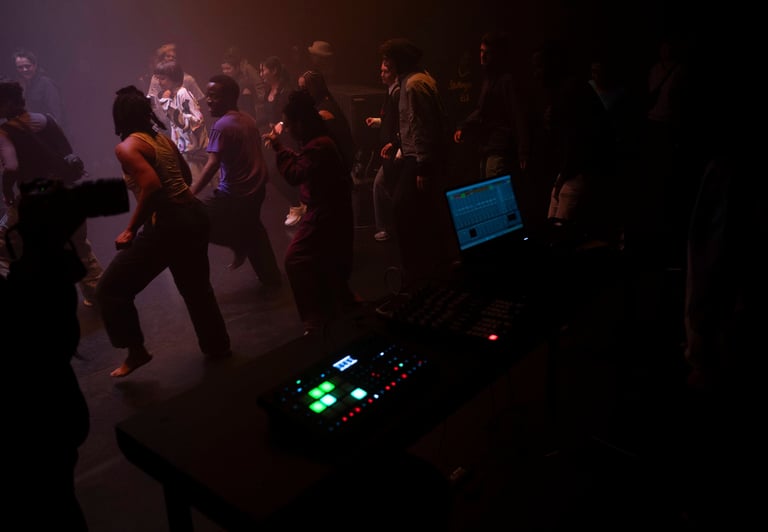With a group of intergalactic beings, they create a landscape of sound where you can feel your whole body shake. Using movement research, subwoofers, bass shakers, vocoders, and DYI instruments as elements to open different portals hidden in between the waves. Not in the need for another utopia but in the need for different options.