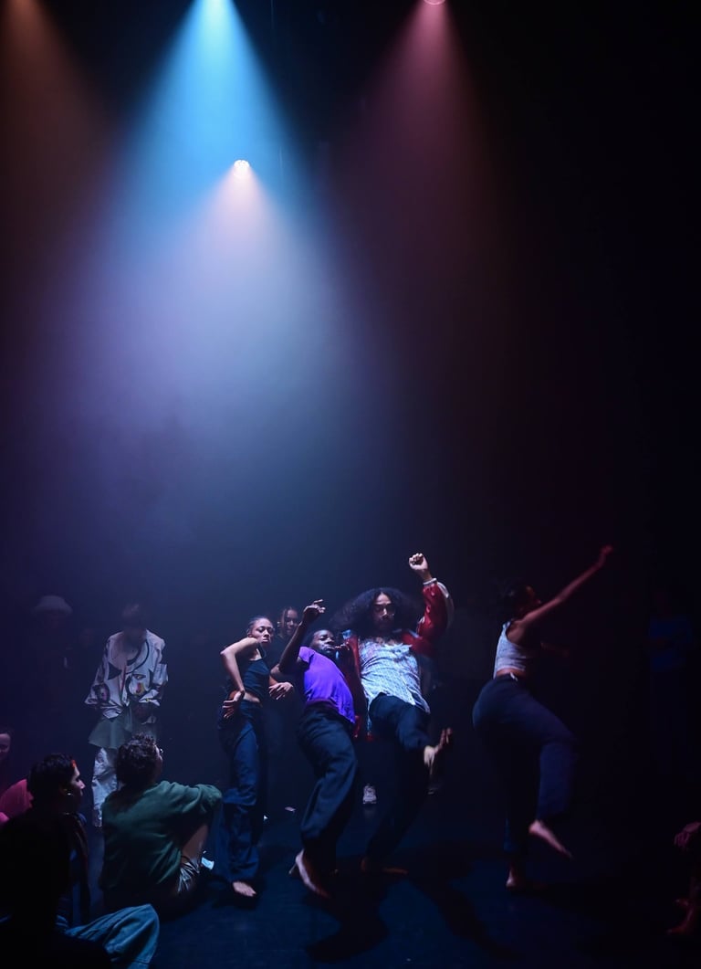 Inspired by the philosophies of Augustus Pablo, who stretches cultural connecting from the West Indies through West Africa, East Africa and on to the islands of the Indonesian archipelago, as the dancers unite in a dance called Poco Poco / The Electric Slide. This is performance for ambi-, intro- and extroverts that come together in a dance that makes your organs vibrate.
